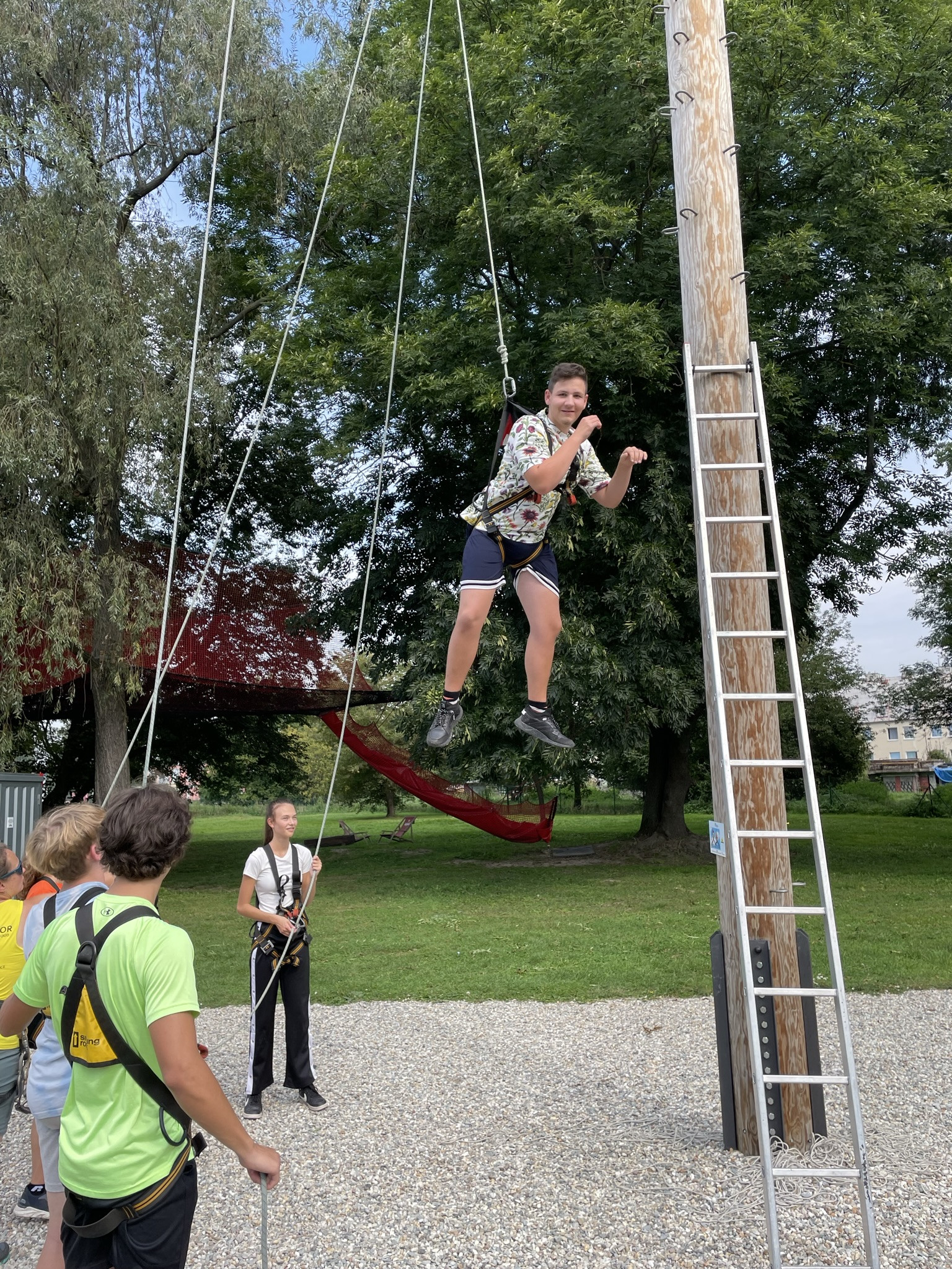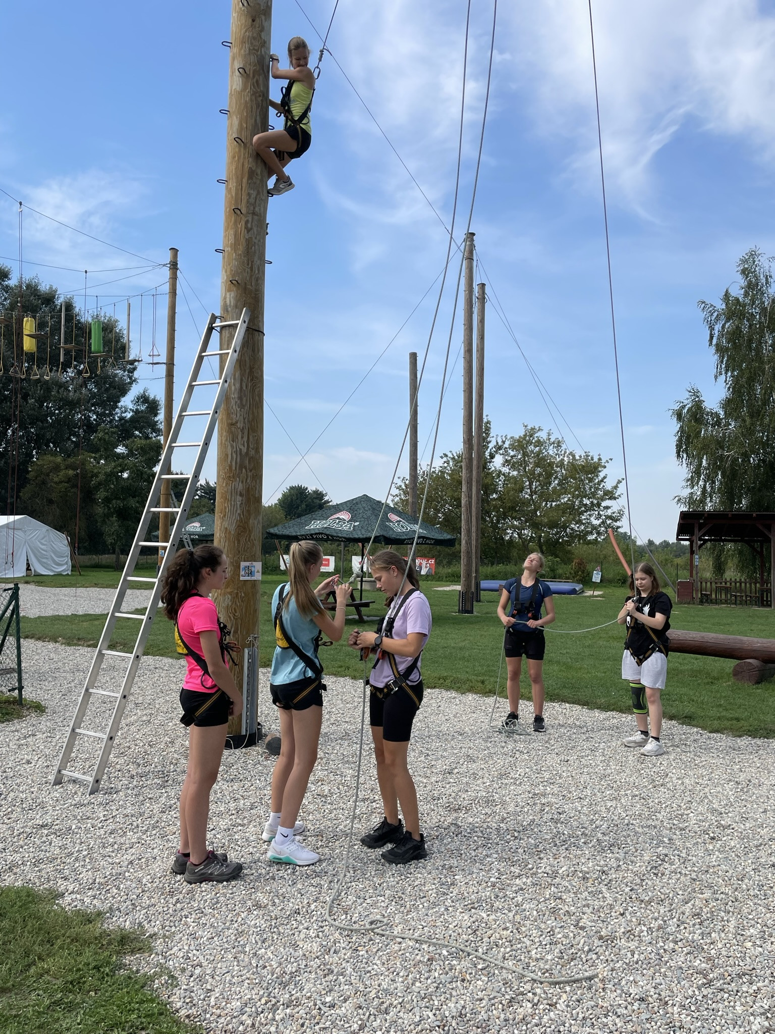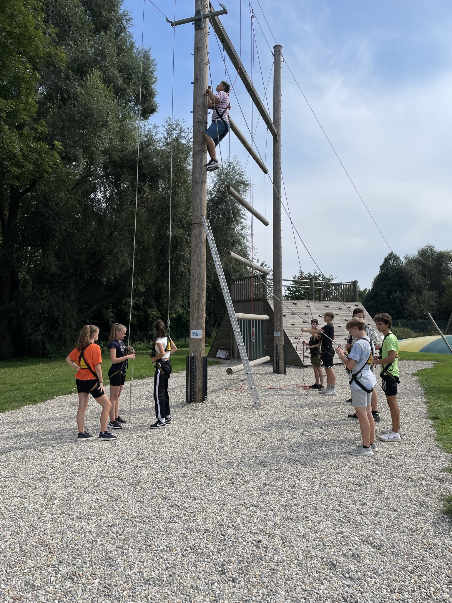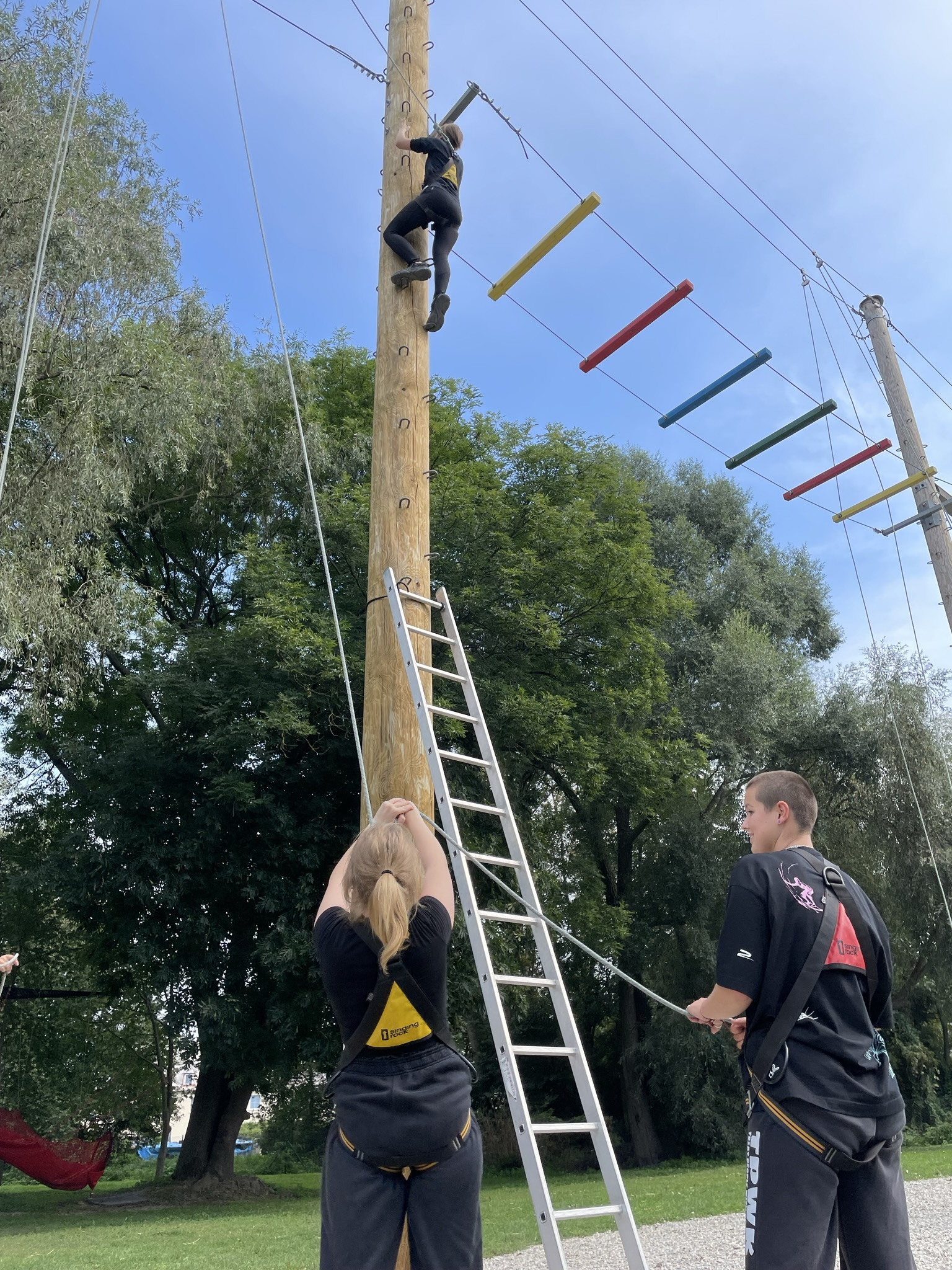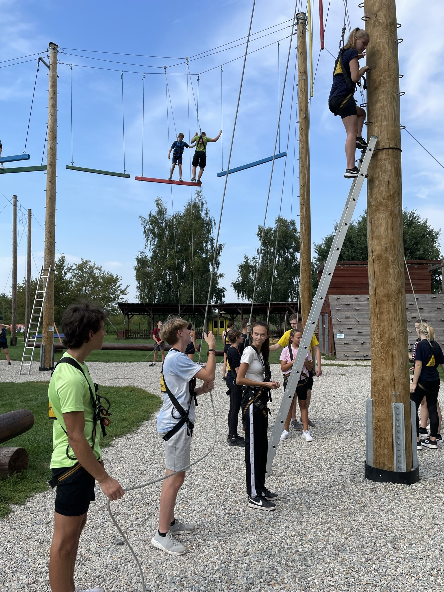 Dne 13. září jsme vzali třídu 1. V na adaptační kurz do lanového centra PROUD v Olomouci. Žáci absolvovali první část kurzu v podobě seznamovacích her, druhá část kurzu byla věnována lezení. Žáci se při zdolávání překážek 10 metrů nad zemí navzájem jistili, což muselo nutně vést k rozvoji důvěry :), navíc zvláště oblíbené byly překážky týmové. Na závěr jsme dostali od lektorů pochvalu, že máme skvělý třídní kolektiv, nyní připravený na plnou zátěž gymnaziálního studia.