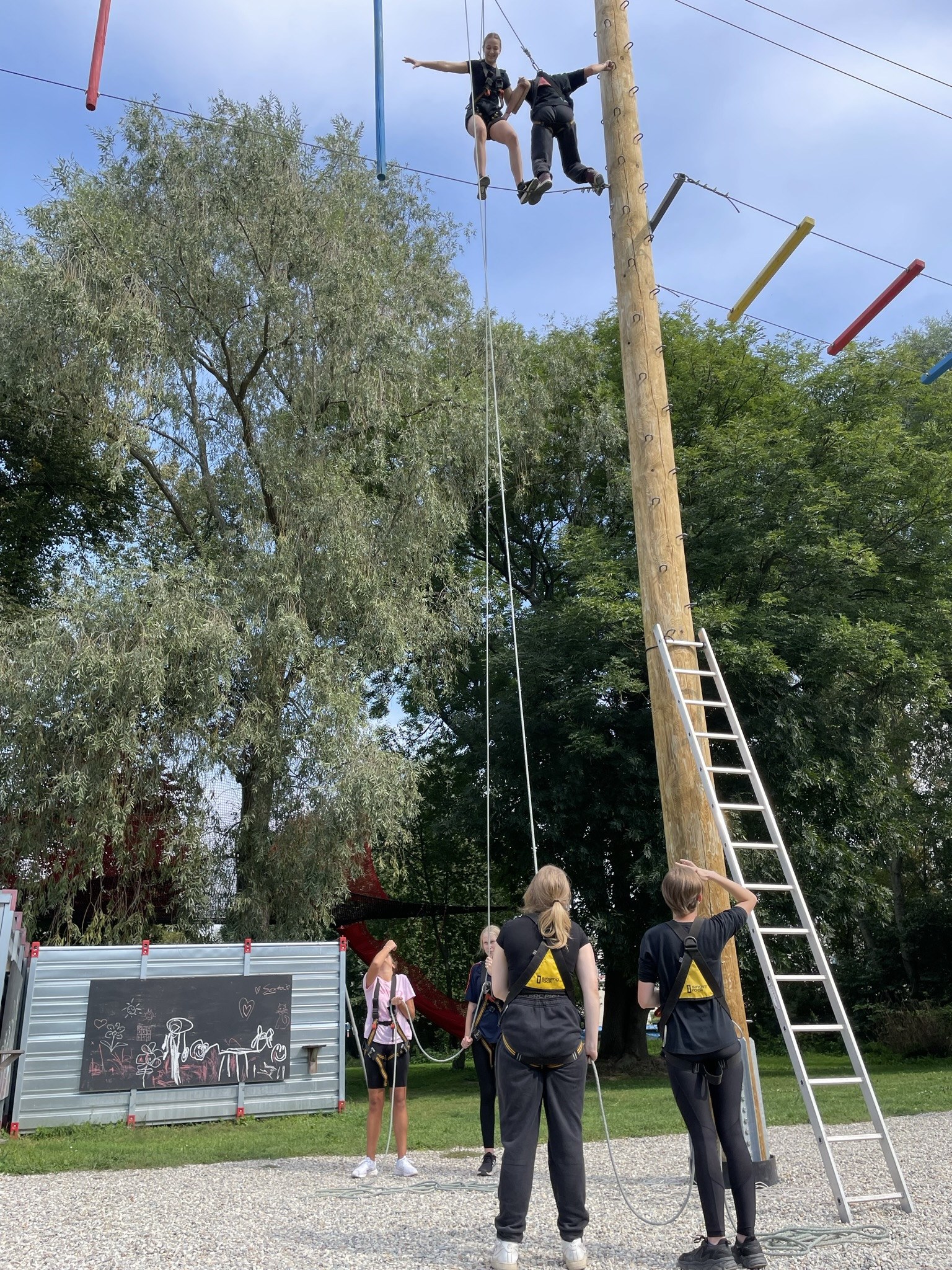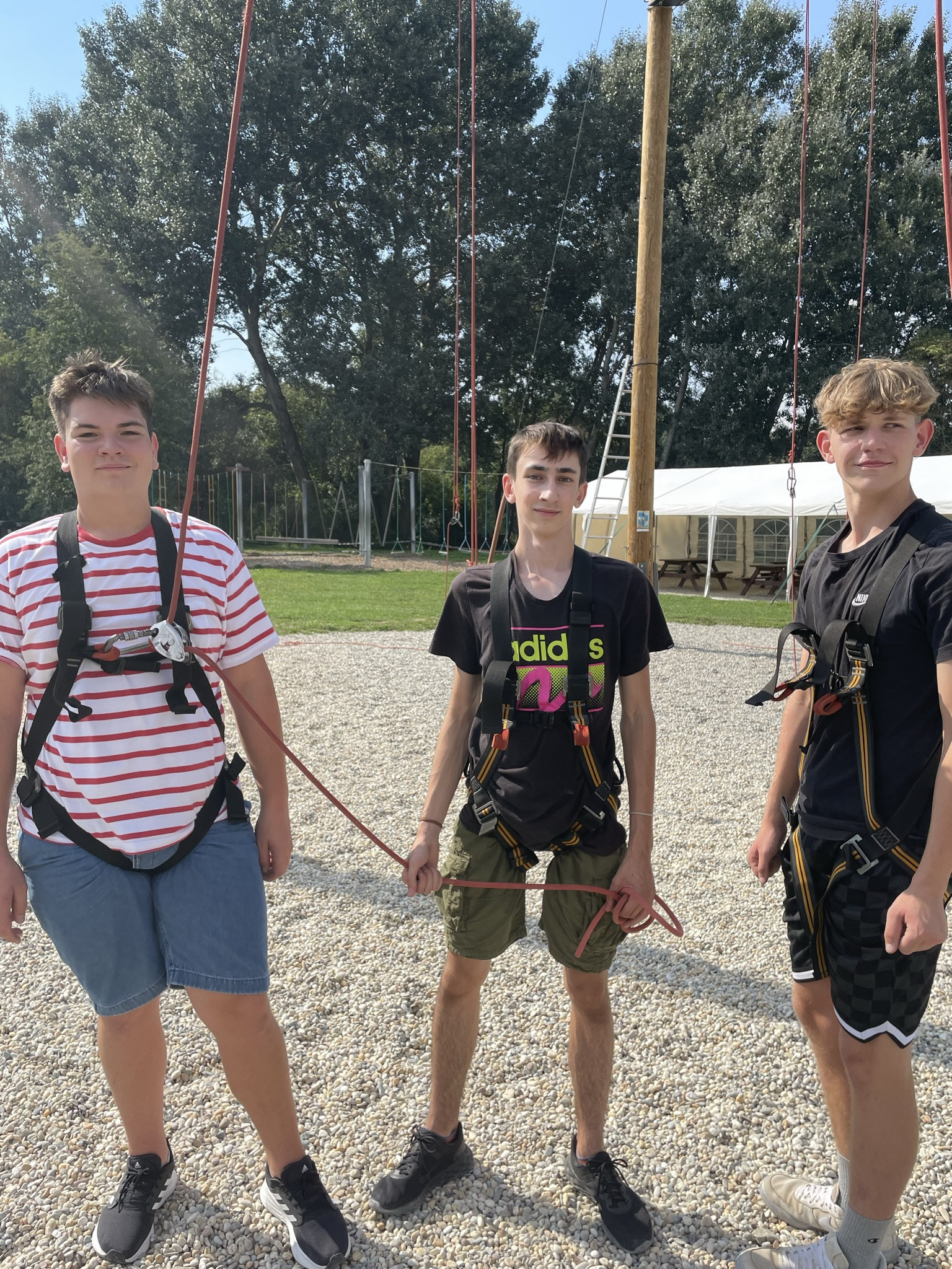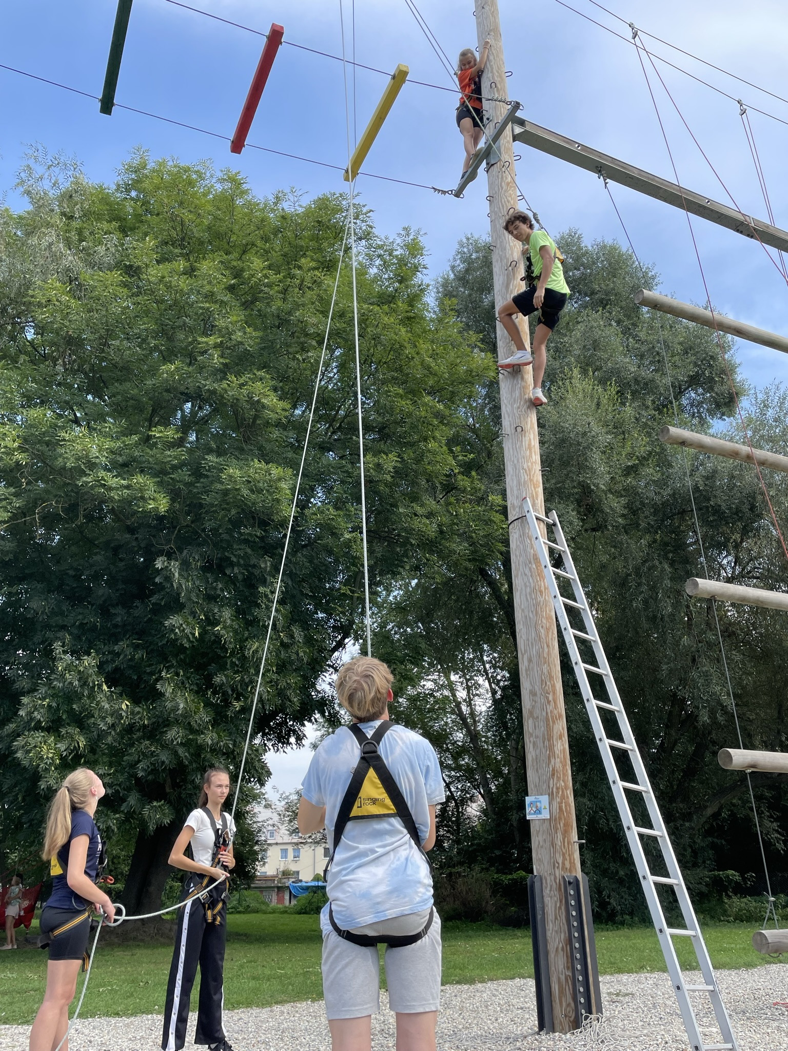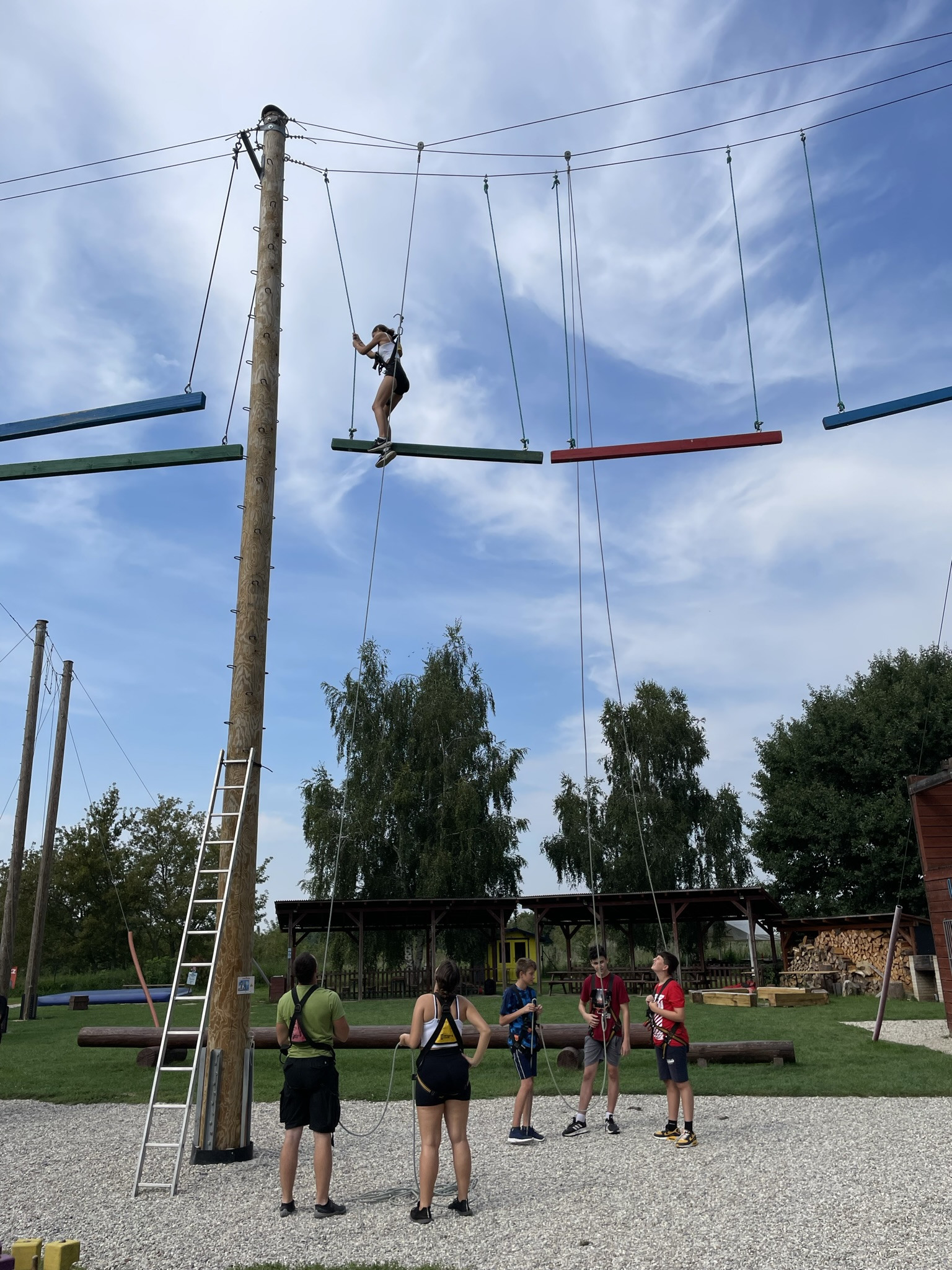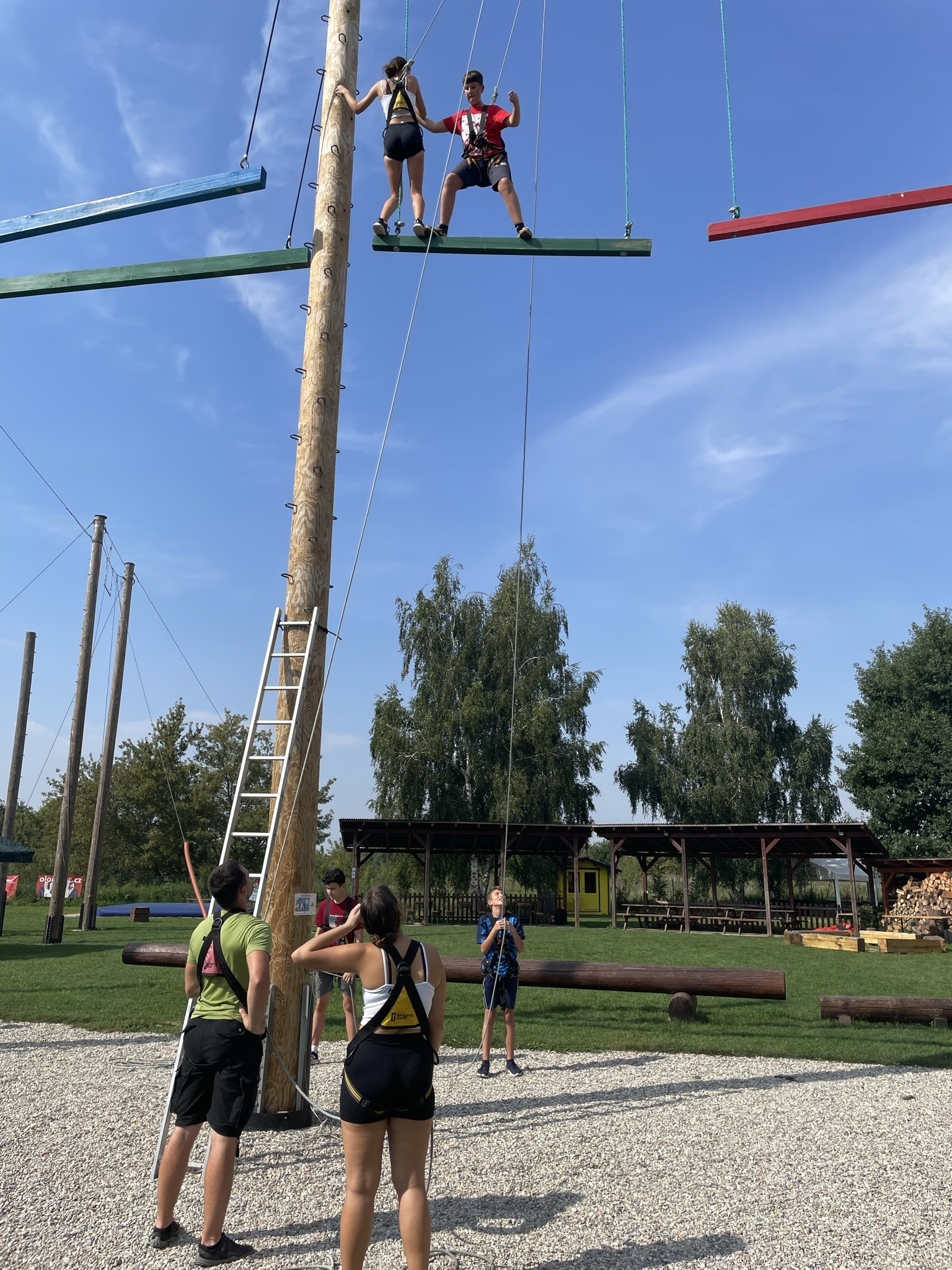 Dne 13. září jsme vzali třídu 1. V na adaptační kurz do lanového centra PROUD v Olomouci. Žáci absolvovali první část kurzu v podobě seznamovacích her, druhá část kurzu byla věnována lezení. Žáci se při zdolávání překážek 10 metrů nad zemí navzájem jistili, což muselo nutně vést k rozvoji důvěry :), navíc zvláště oblíbené byly překážky týmové. Na závěr jsme dostali od lektorů pochvalu, že máme skvělý třídní kolektiv, nyní připravený na plnou zátěž gymnaziálního studia.