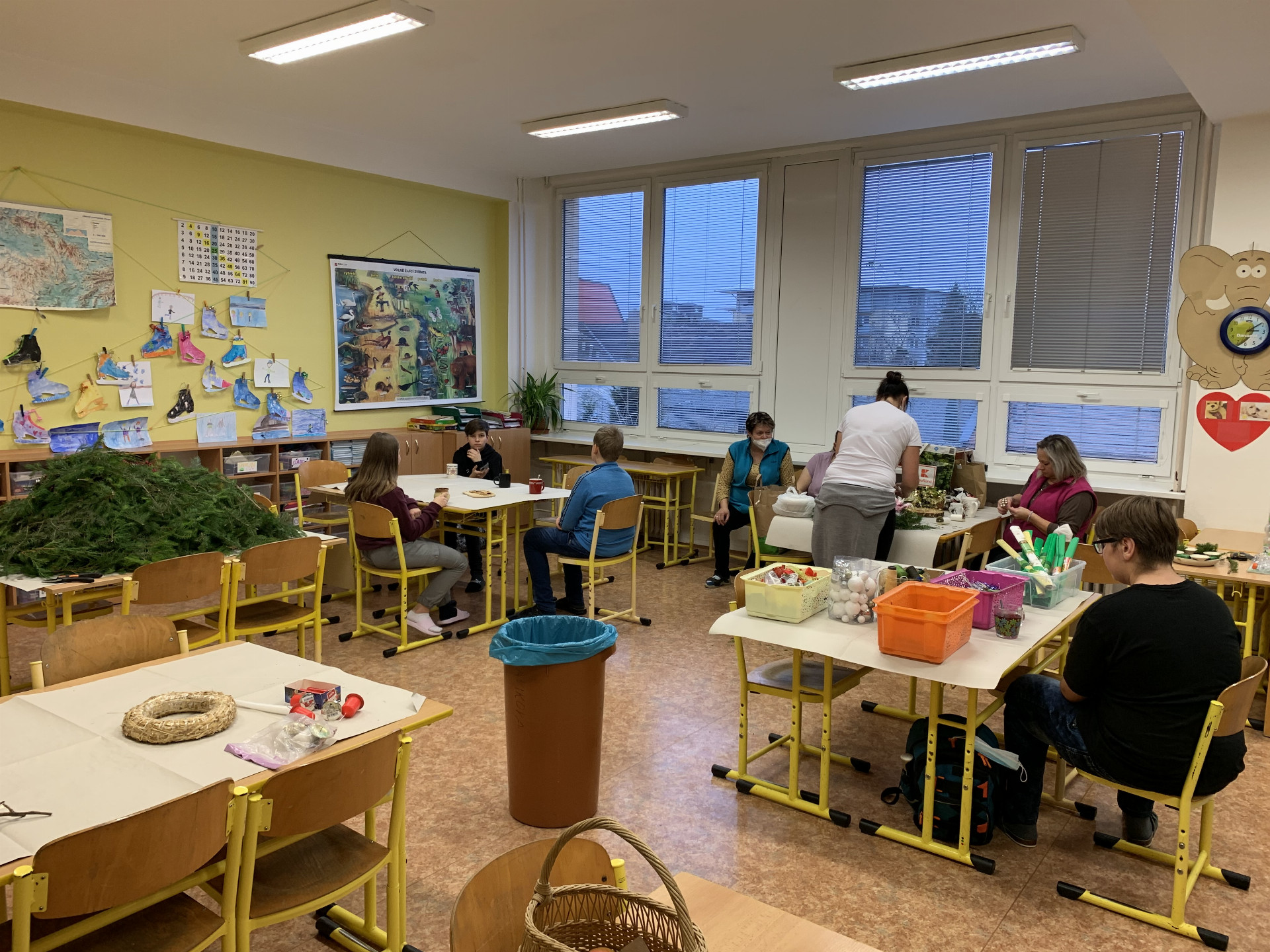Ve středu 24. listopadu se v odpoledních hodinách ve třídě 3.A uskutečnila na naší škole již tradiční adventní dílna pro žáky a zaměstnance školy. Je hezké, že jsme se po loňské nucené odmlce mohli zase sejít v příjemné předvánoční náladě plné tvůrčích nápadů. Šikovné ruce všech přítomných vytvořily vskutku překrásná díla: adventní věnce, svícny, zdobené větvičky k zavěšení a jiné zajímavé dekorace.