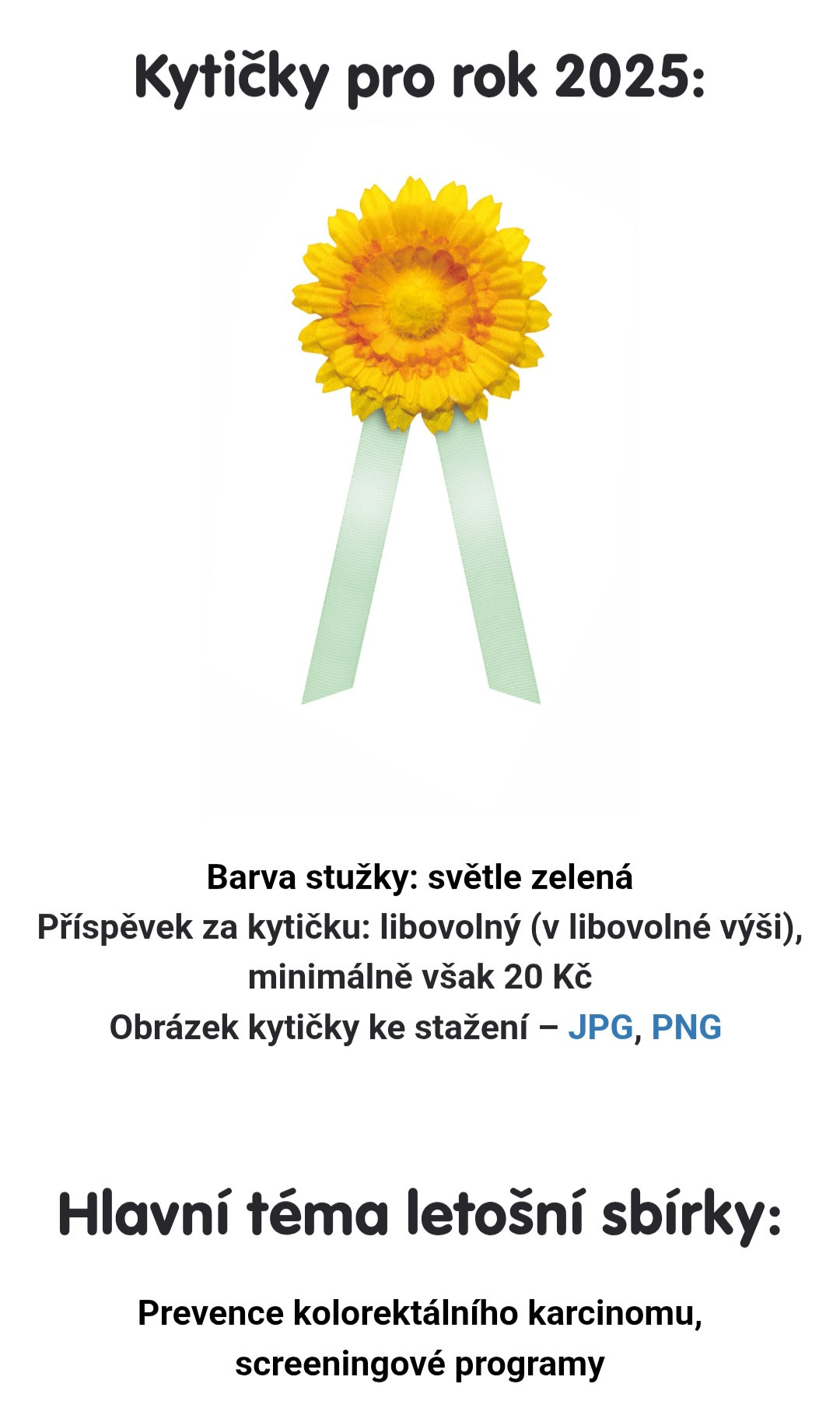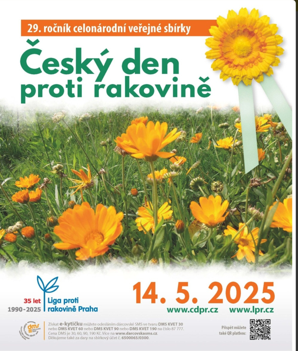 Ve středu 14. 5. 2025 se na naší škole uskuteční sbírka Český den proti rakovině. Studenti gymnázia budou navštěvovat všechny třídy školy a nabízet žluté kytičky za cenu 20Kč. Děkujeme všem, kteří se sbírky zúčastní!