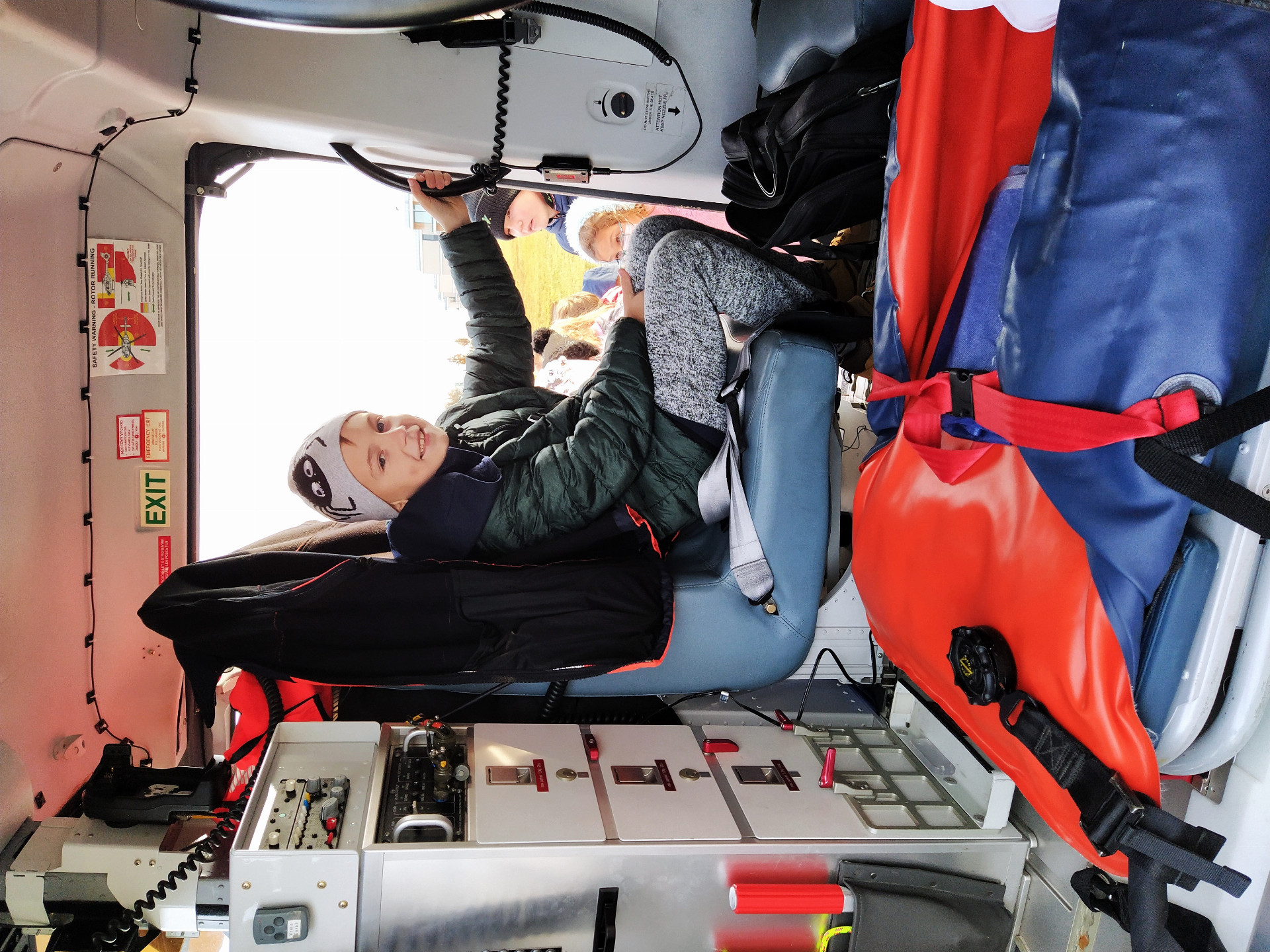 Dočkali jsme se i toho nejzajímavějšího a všemi nejvíce očekávaného. Tím byl záchranářský vrtulník. Měli jsme to štěstí, že jsme mohli být přítomni při jeho přistávání. Po přistání si děti poslechly odborný výklad nejen o technickém vybavení vrtulníku, vyzkoušely, jak těžké jsou batohy vybavené nezbytným zdravotnickým materiálem a léky a zkusily, jaké to je sedět ve vrtulníku. Nechyběly ani zvídavé dětské otázky a slova uznání, jak náročné povolání je být záchranář.