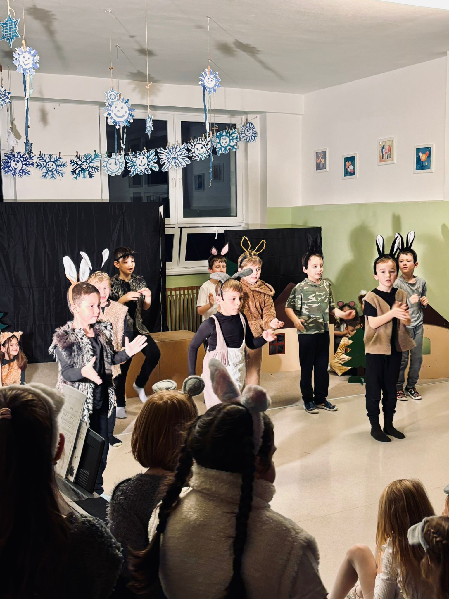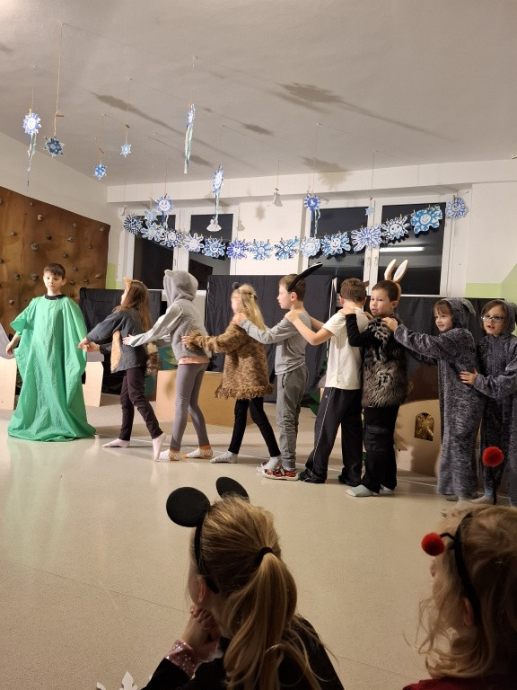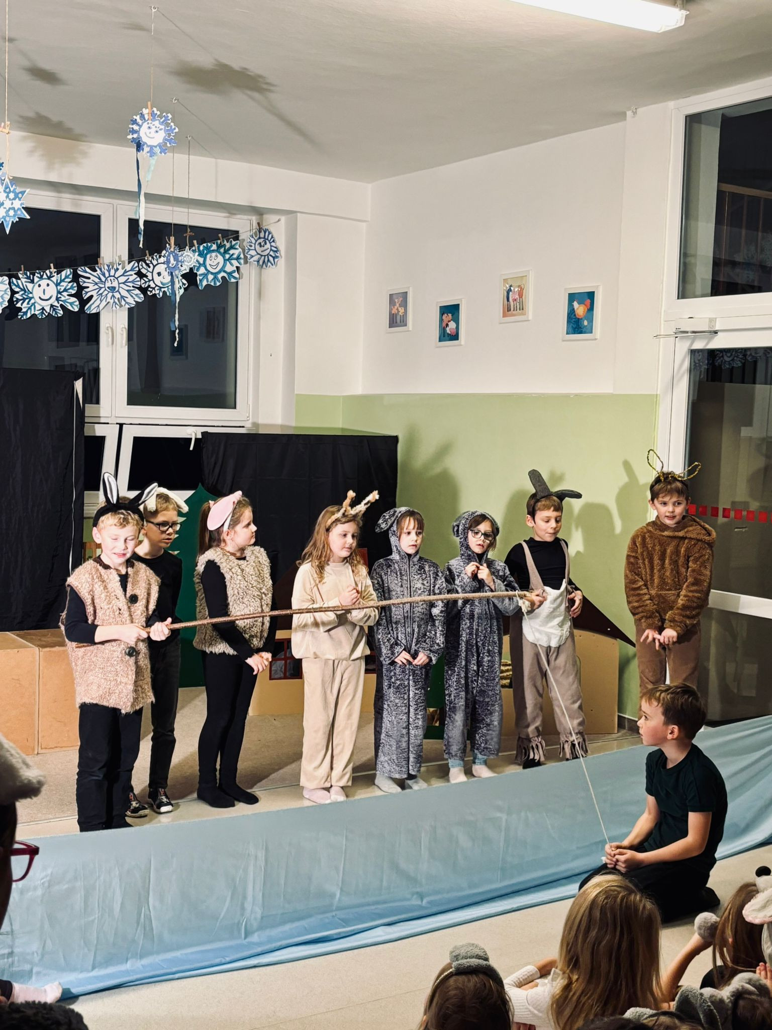 Vánočně laděné pohádkové pásmo "Jak to chodí u zvířátek" předvedli ve čtvrtek 11. prosince 2025 pod vedením paní učitelky Jitky Minářové žáci prvních a druhých tříd.