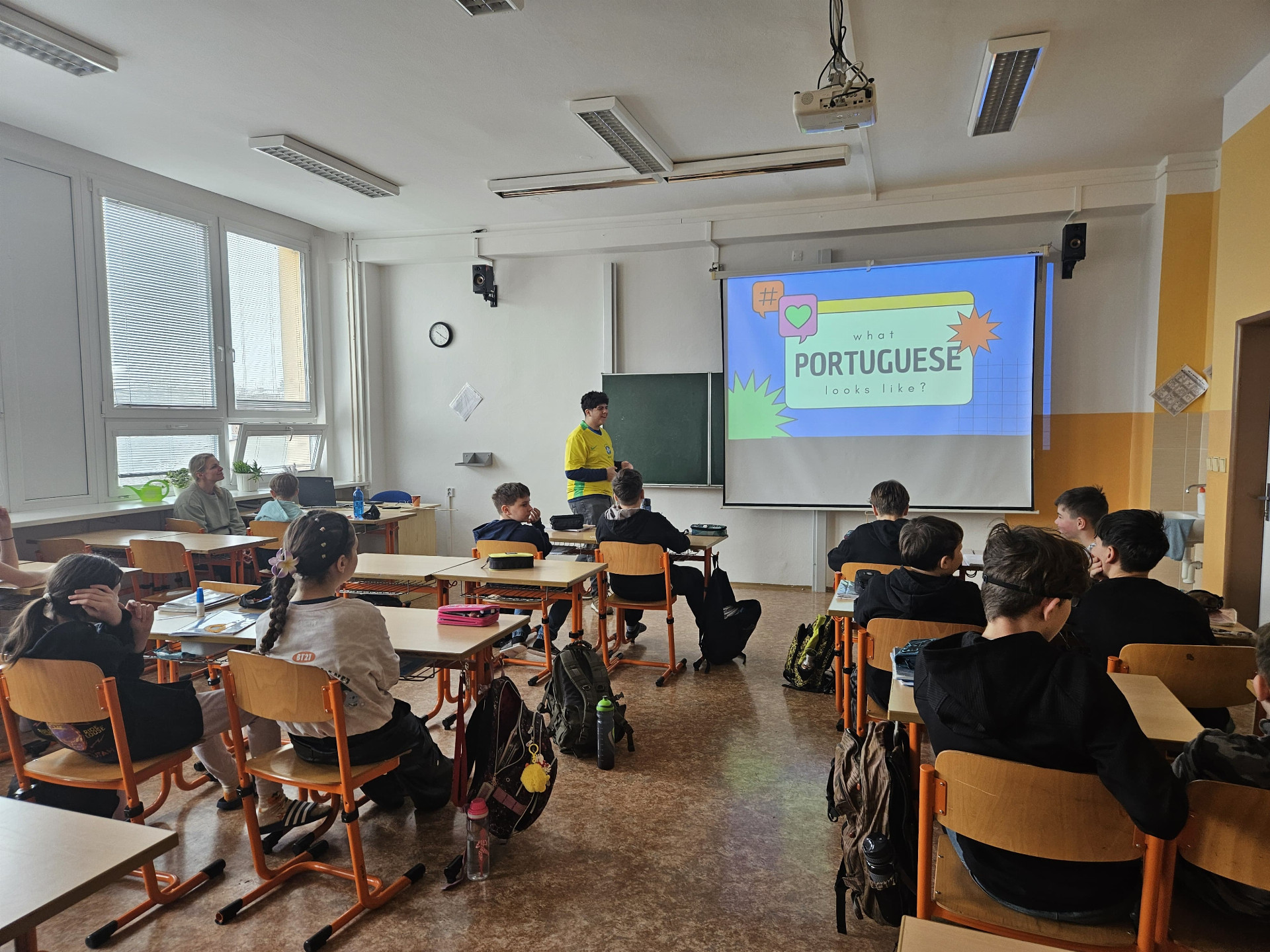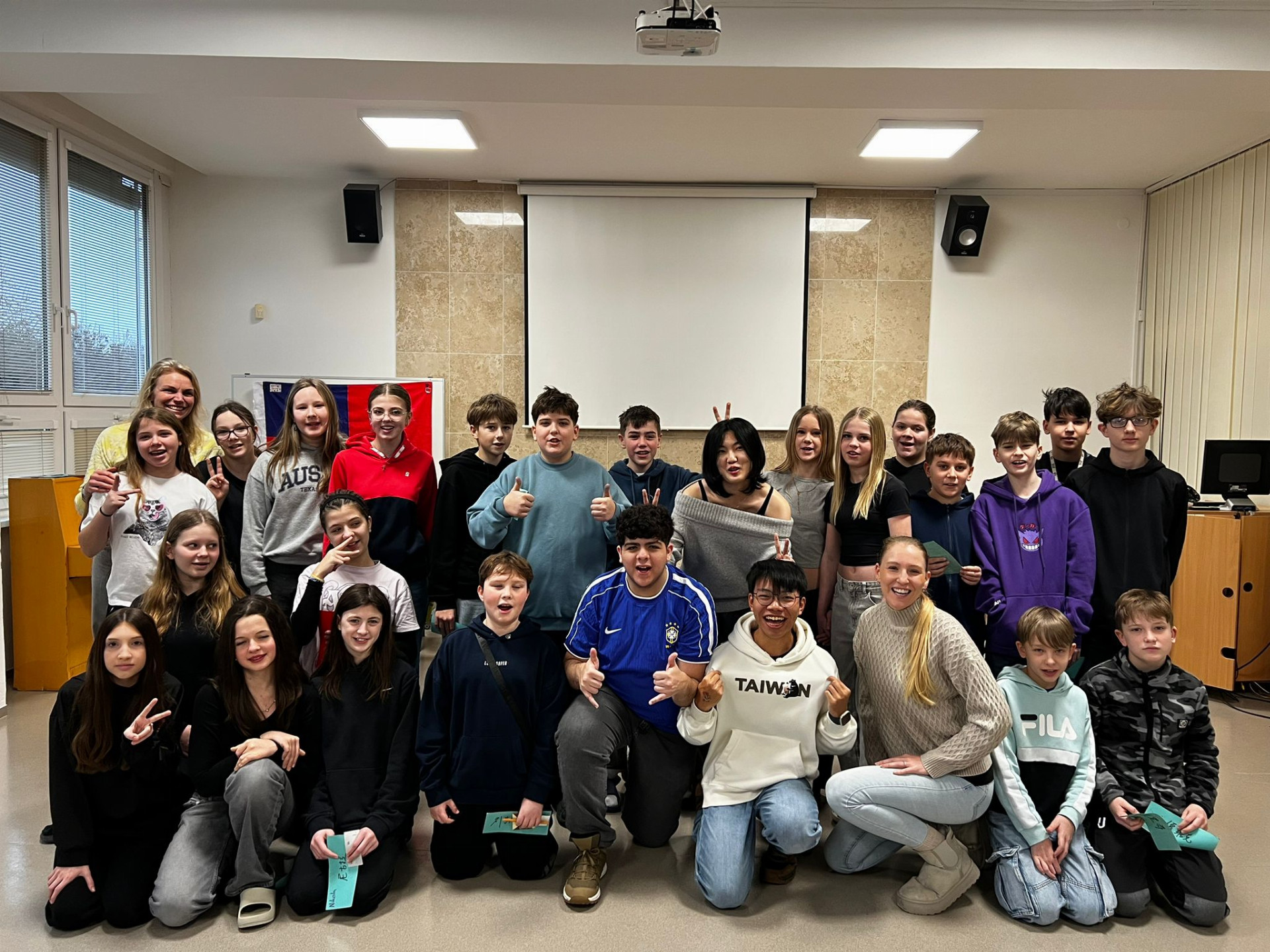 Tentokrát k nám zavítali tři stážisté – Samuel z Brazílie, Diego z Tchaj-wanu a Rio z Jižní Koreje. Během hodin anglického jazyka představovali žákům své země, tradice, školní systém i každodenní život. Nechyběly prezentace, diskuse ani interaktivní aktivity, díky kterým si žáci mohli angličtinu vyzkoušet v autentických situacích.