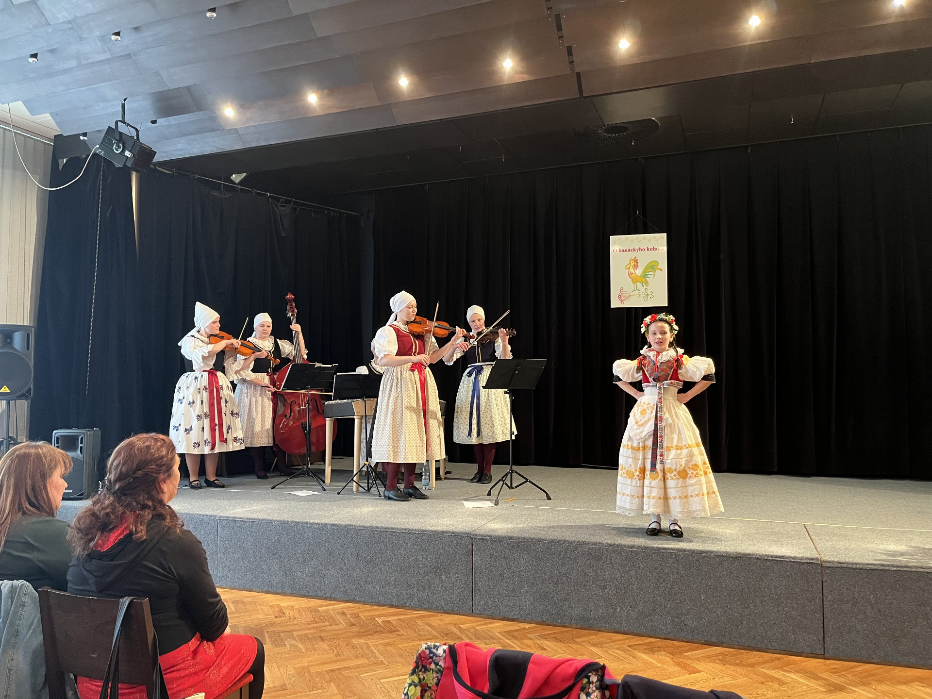 V neděli 16. 4. 2023 proběhlo v prostějovském Kulturním klubu Duha krajské kolo soutěžní přehlídky dětí v sólovém zpěvu lidových písní – O hanáckyho kohóta. Setkali se zde soutěžící z Prostějova, Olomouce, Přerova, Kroměříže, Zábřehu a Šumperka. Naši školu ve velké konkurenci malých šikovných zpěváčků a zpěvaček úspěšně reprezentovala Justinka Pejchalová ze třídy 4.A.