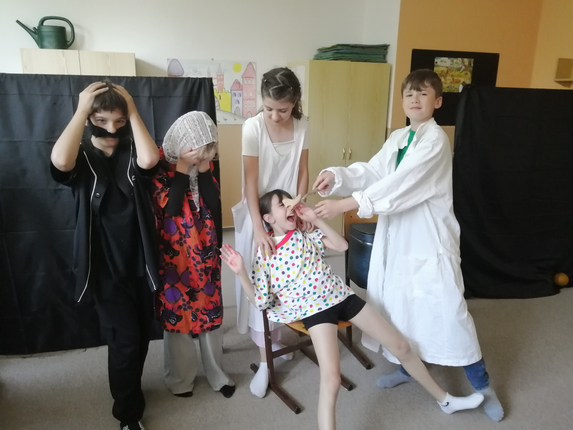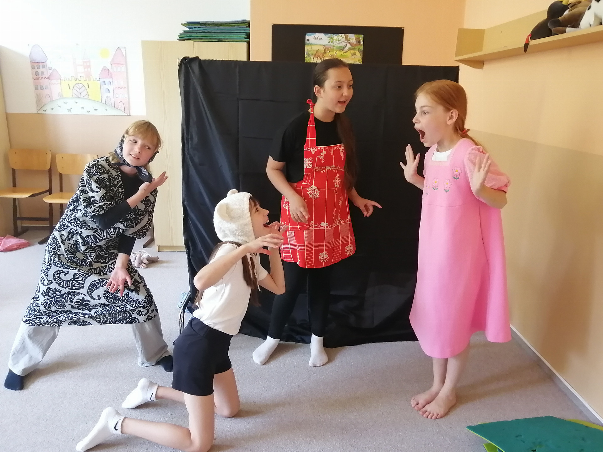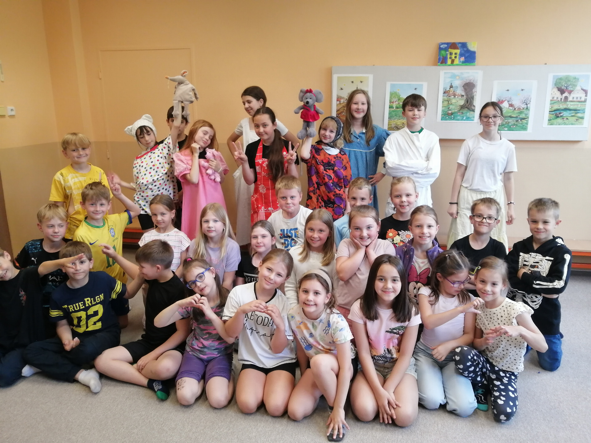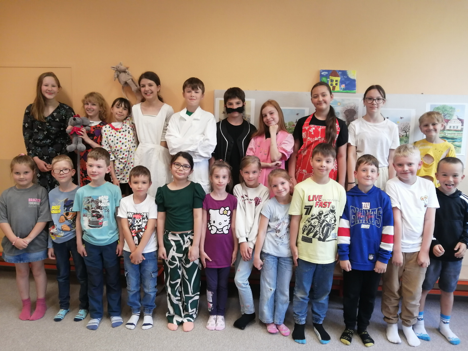 Na závěr školního roku si připravili žáci v dramatické výchově tři veselé a naučné pohádky pro naše nejmladší žáčky. Pohádky o zlobivých dětech nadchly nejen prvňáčky a druháčky, ale v pátek se přišli na představení podívat i starší spolužáci. Během představení se diváci aktivně zapojovali do děje a také si zatancovali na známé písničky. Děkujeme divákům za veselou atmosféru a všem účinkujícím za skvělé herecké výkony.