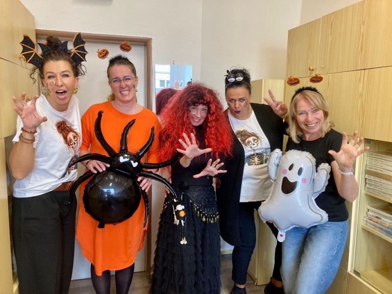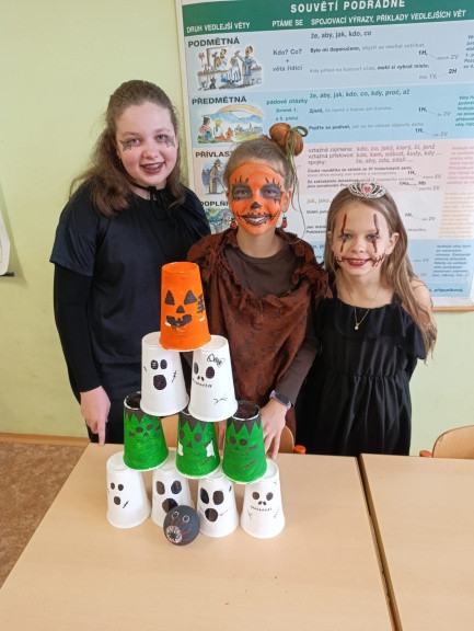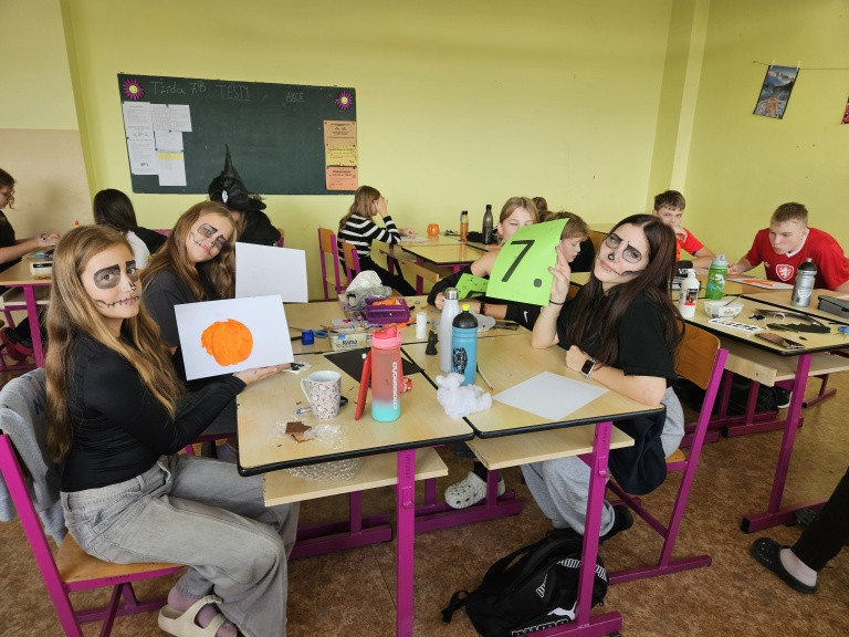 Halloweenská kreativní výzva nikoho z řad šesťáků ani sedmáků nezaskočila. Jejich výtvory budou v následujících týdnech zkrášlovat vestibul školy a jedna ze tříd bude odměněna za nejoriginálnější výzdobu.