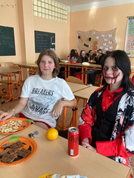 Organizace vlastní kinokávarny se osmákům a deváťákům povedla na výbornou. U anglického halloweenského filmu si zpříjemnili dopoledne a podělili se navzájem o dobroty nejen vlastní výroby.
