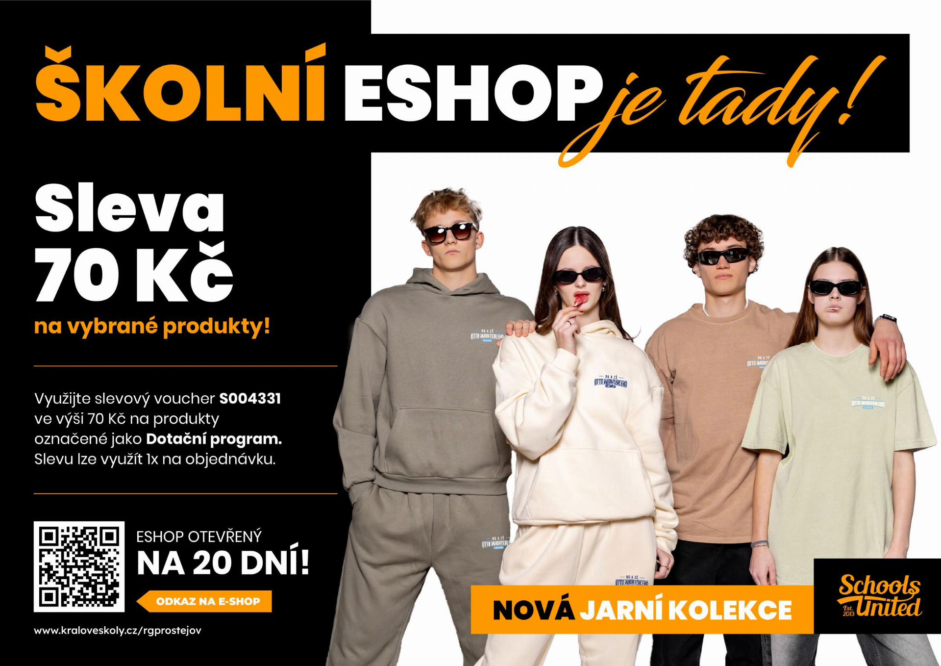 I tento rok pro Vás máme skvělou zprávu. Naše škola má vlastní volnočasovou kolekci oblečení plnou mikin, triček, batohů, čepic a dalších produktů se školním logem. E-shop je znovu otevřen a letos obsahuje mnoho novinek! Nabídku najdete na tomto odkazu: https://www.kraloveskoly.cz/rgprostejov/