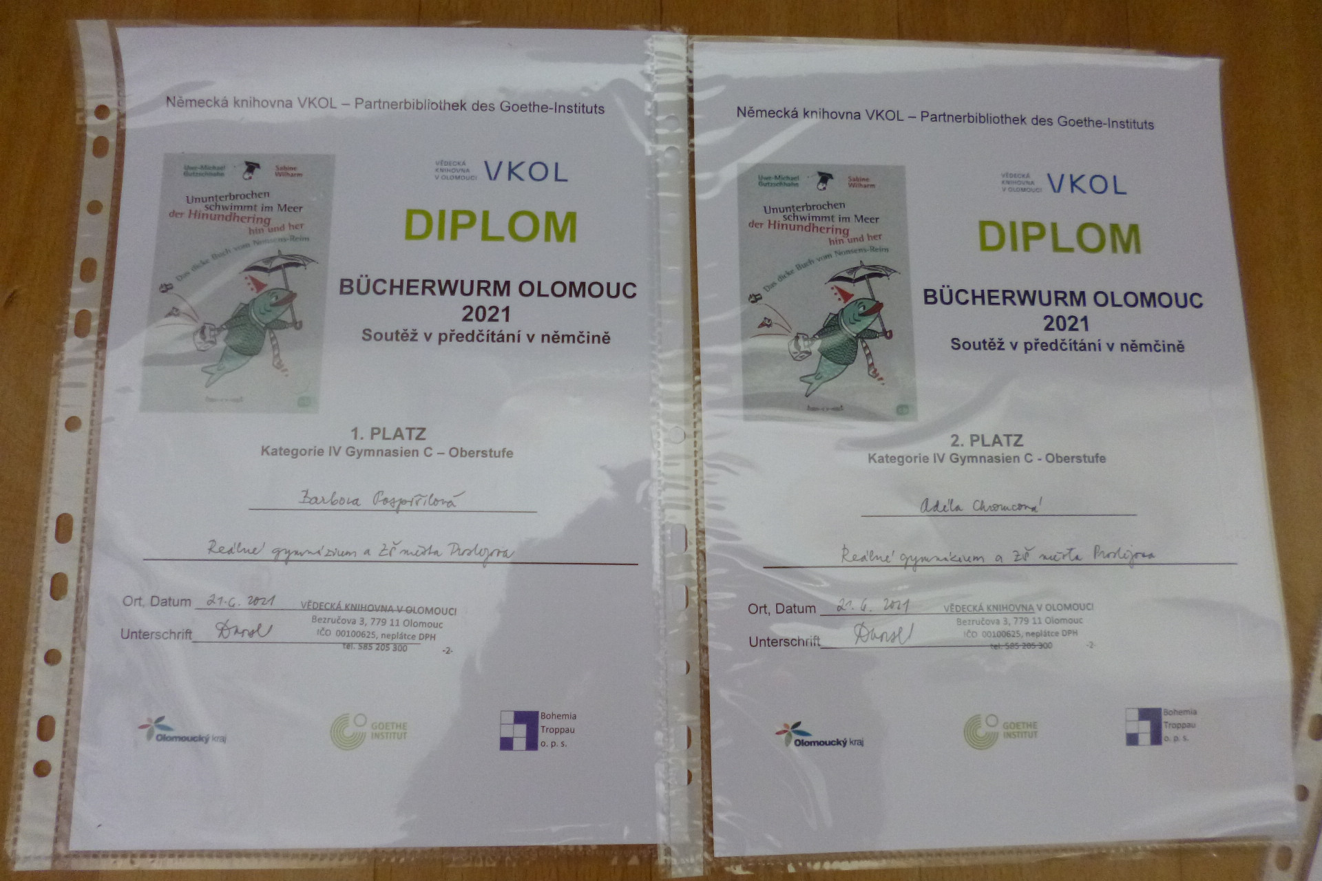 Všichni recitátoři dostali od pořádajícího Goethe Institutu Praha a Vědecké knihovny Olomouc pěkné ceny a my jim gratulujeme a děkujeme za reprezentaci školy.