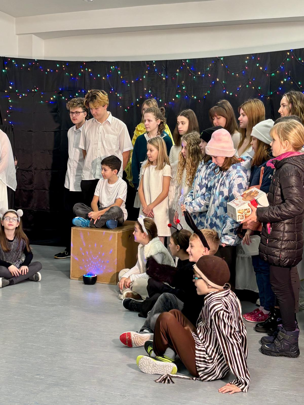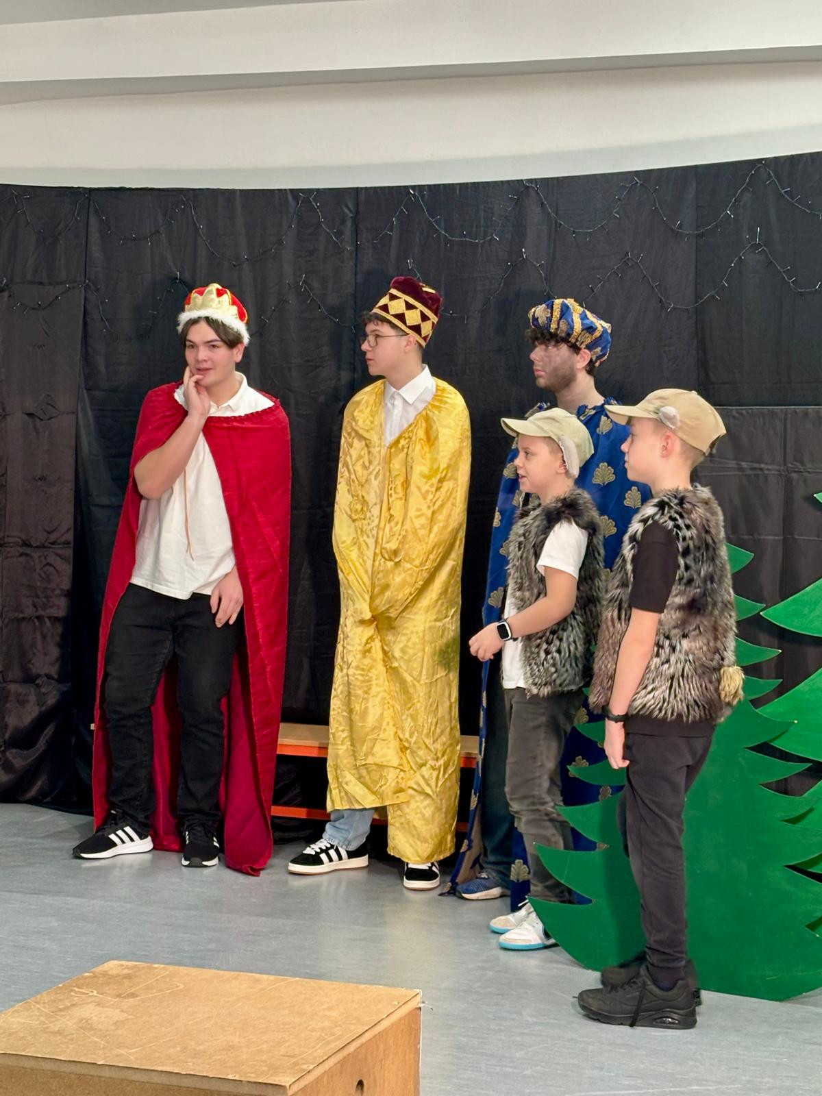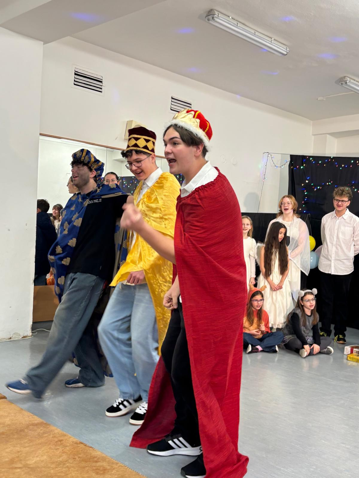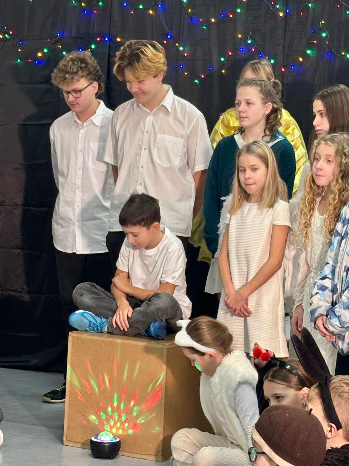 To desáté pak bylo určeno rodičům a široké veřejnosti a odehrálo se v prostorách školy dne 18. 12. 2025 v podvečerních hodinách. Je třeba dodat, že nejvíce je na celém projektu třeba hodnotit zapojení dětí a studentů základní školy a gymnázia, což, jak dobře víme, je v dnešní uspěchané době již velmi vzácné. Představení bylo hudebně doprovázeno pěveckým sborem školy, který vede PaedDr. Dagmar Havlíková. Ta v představení usedla za klavír, sbor pak řídil velmi talentovaný hudebník Jan Kulda, který si zahrál i roli krále Kašpara.