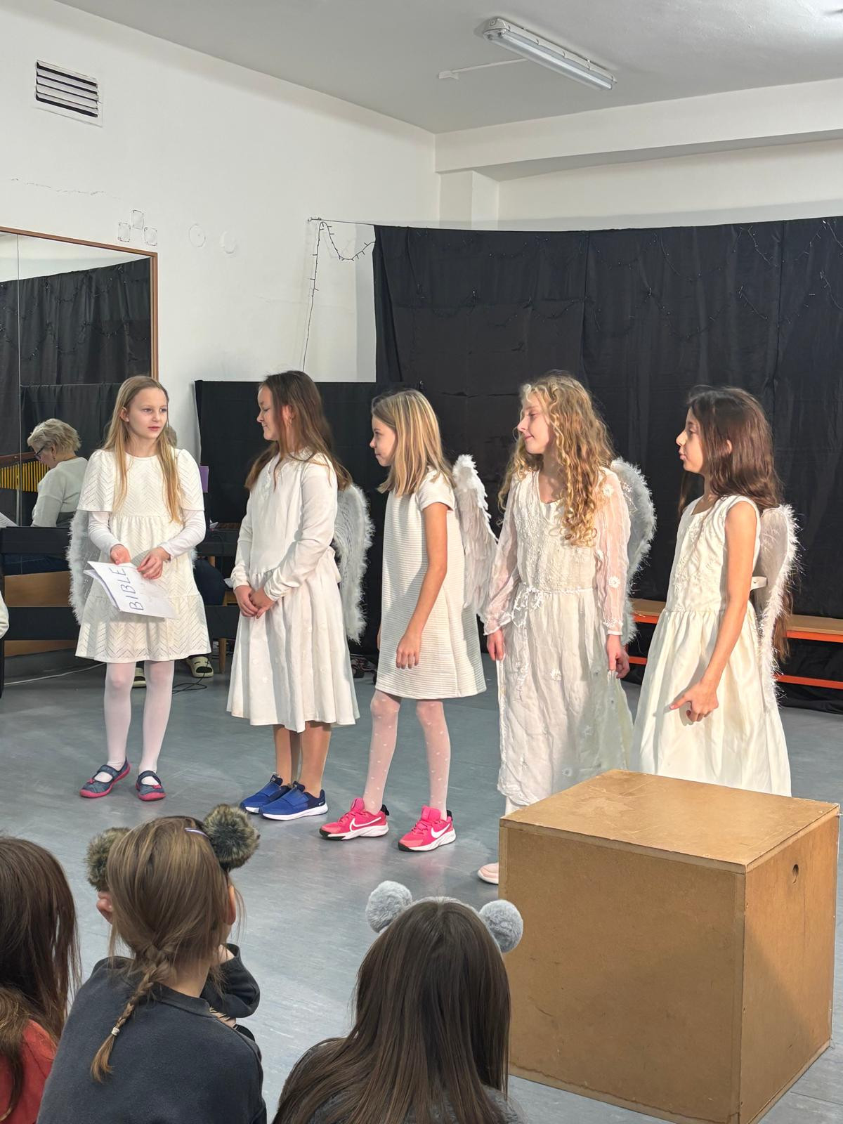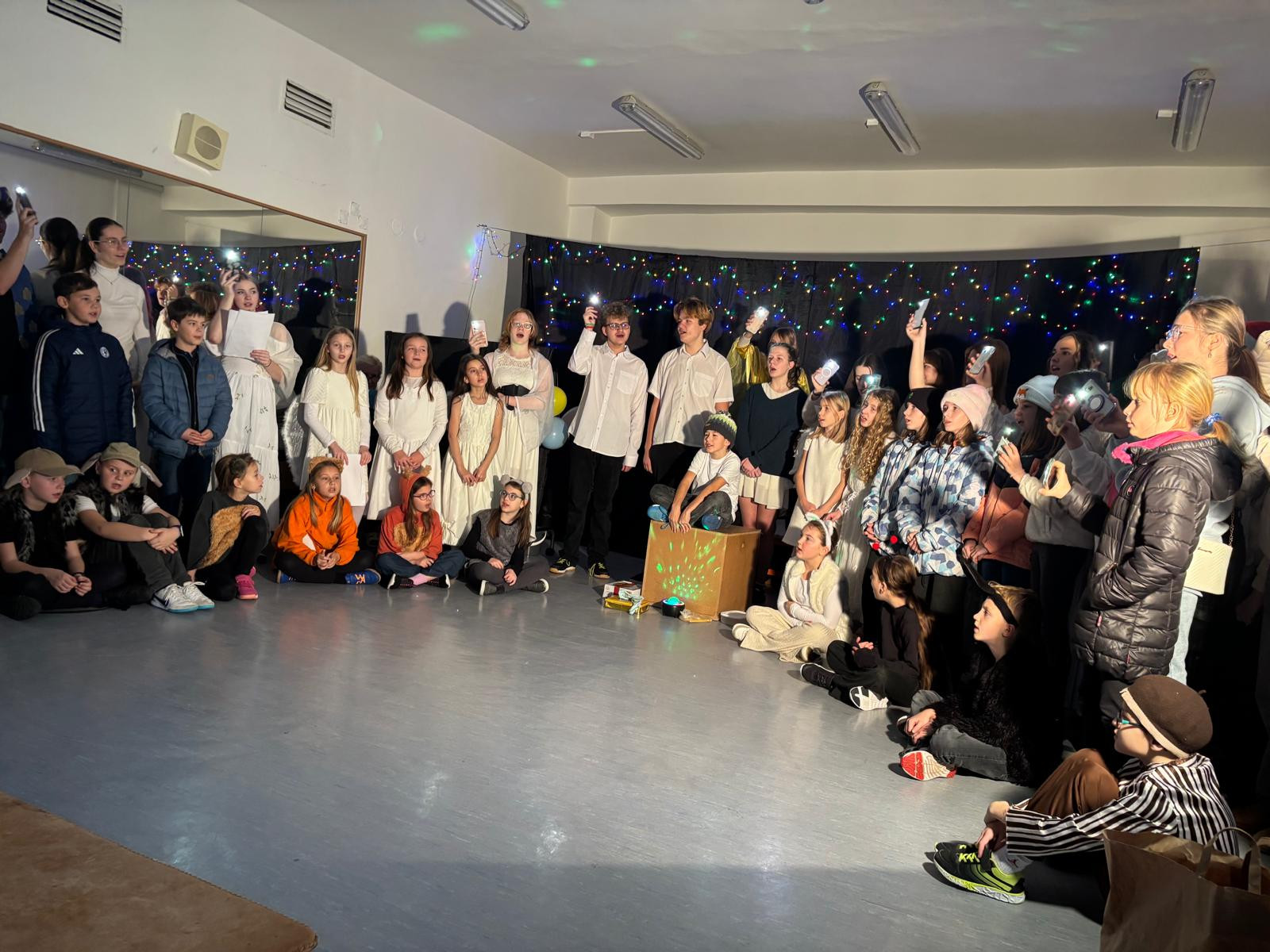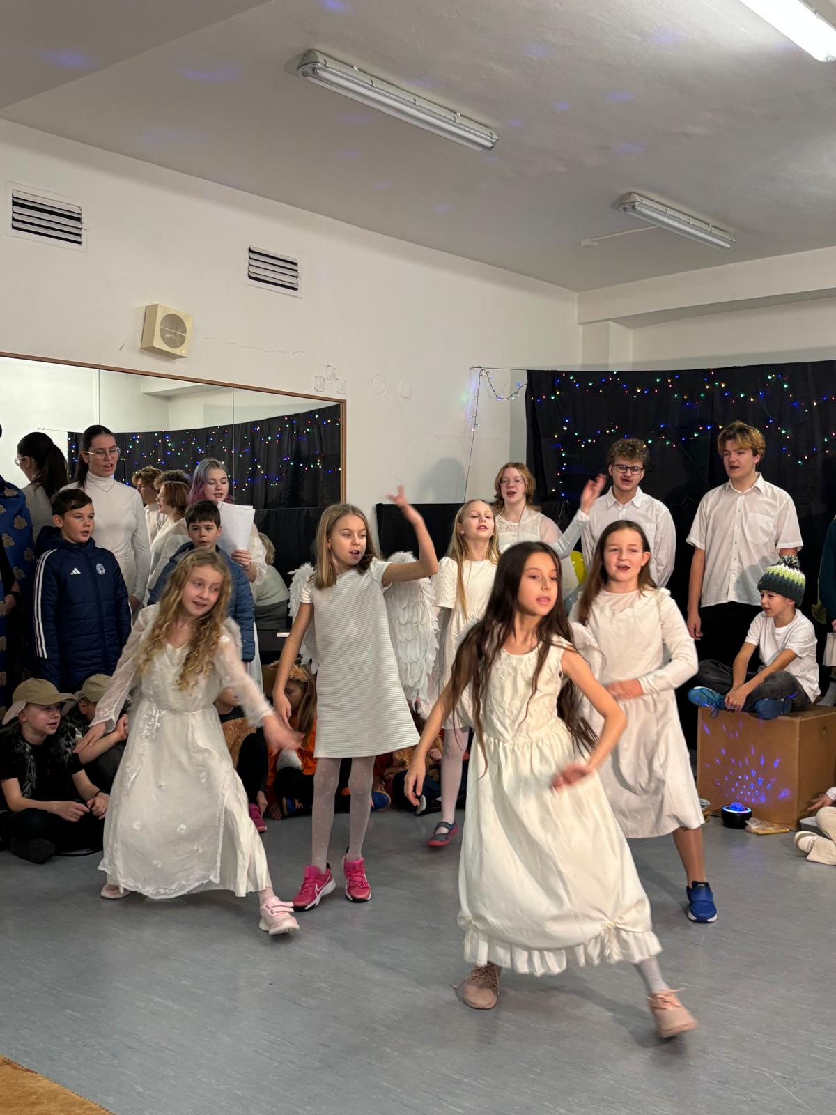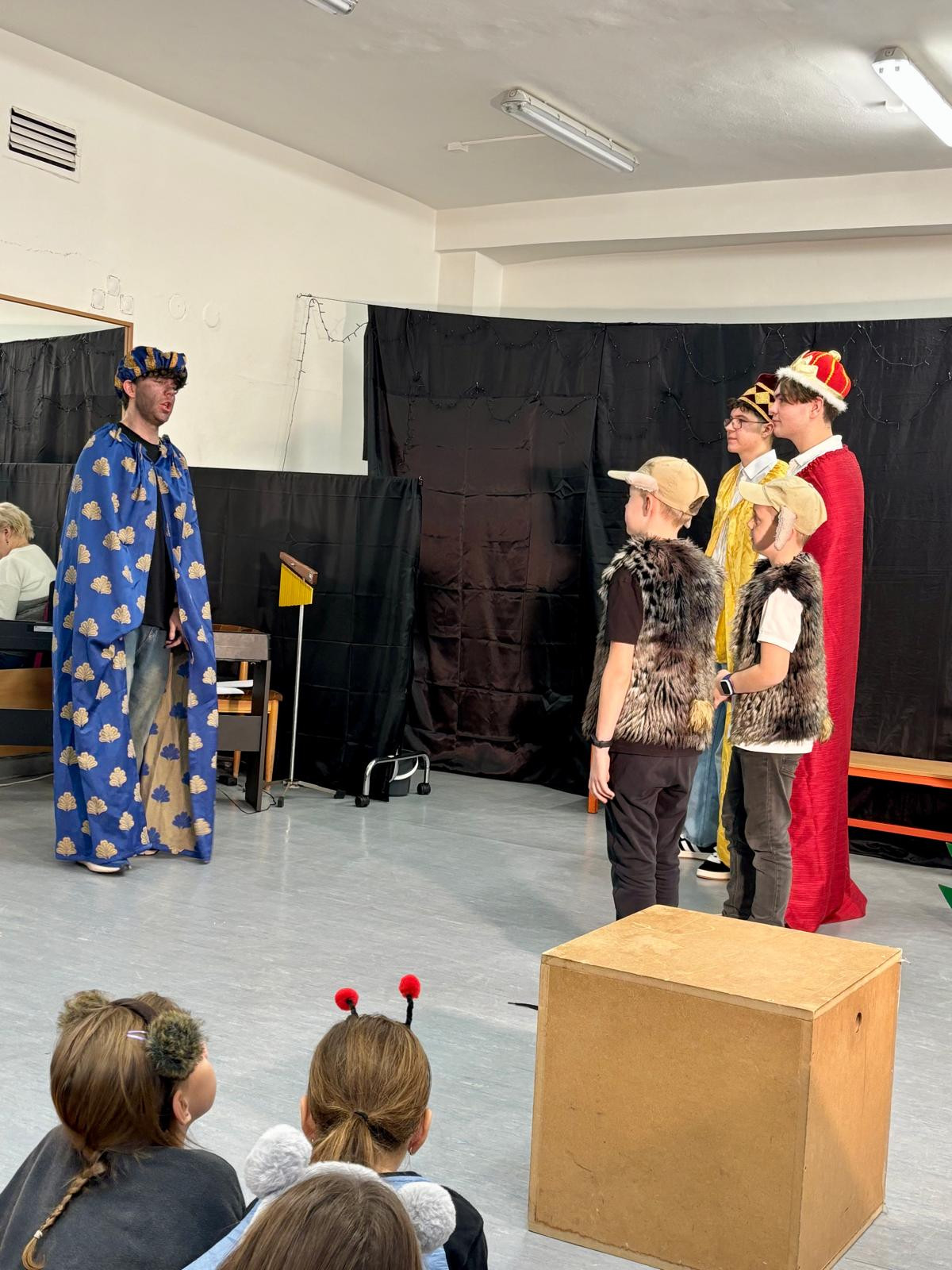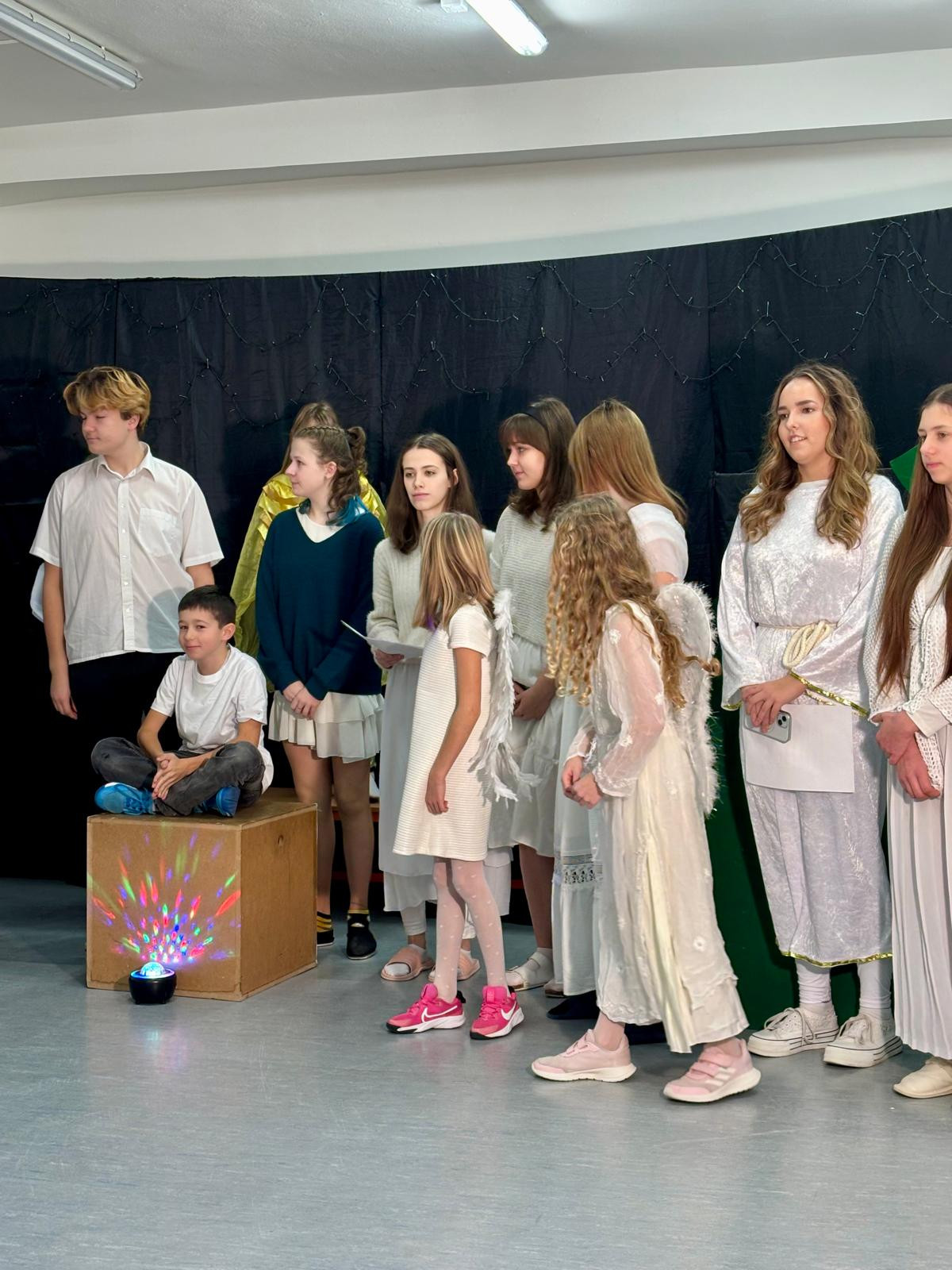 To desáté pak bylo určeno rodičům a široké veřejnosti a odehrálo se v prostorách školy dne 18. 12. 2025 v podvečerních hodinách. Je třeba dodat, že nejvíce je na celém projektu třeba hodnotit zapojení dětí a studentů základní školy a gymnázia, což, jak dobře víme, je v dnešní uspěchané době již velmi vzácné. Představení bylo hudebně doprovázeno pěveckým sborem školy, který vede PaedDr. Dagmar Havlíková. Ta v představení usedla za klavír, sbor pak řídil velmi talentovaný hudebník Jan Kulda, který si zahrál i roli krále Kašpara.