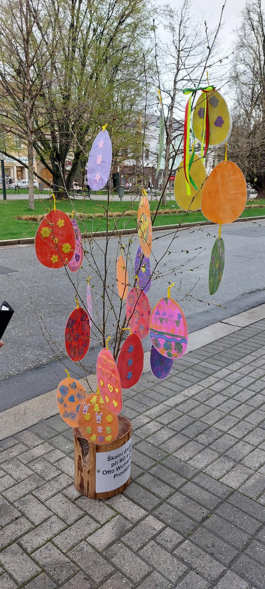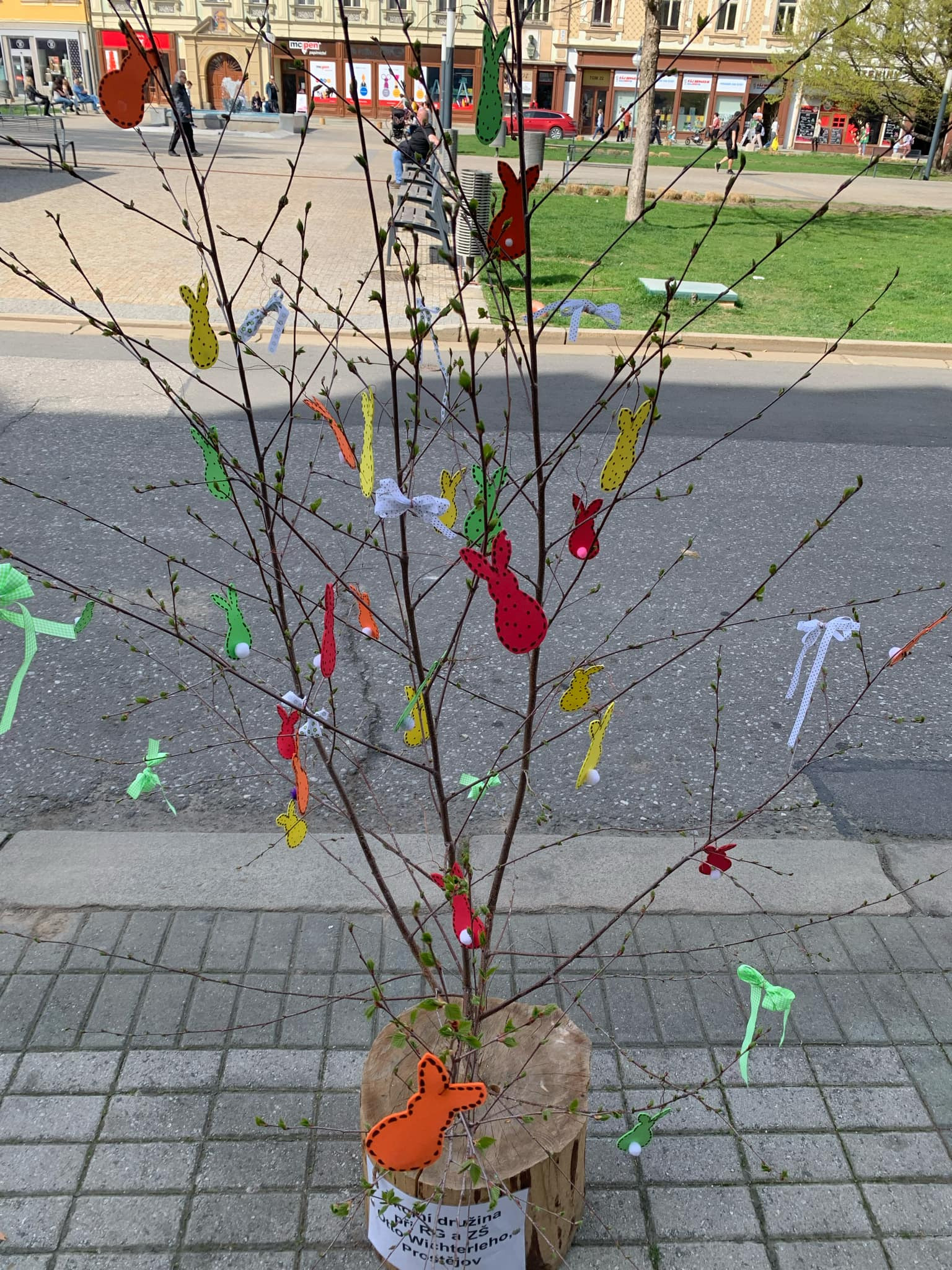 I v letošním roce se naše školní družina zúčastnila zdobení dvou velikonočních stromečků na náměstí T. G. Masaryka. Jeden stromeček jsme ozdobili pestrými vajíčky, které děti namalovaly. Druhý stromeček zdobí veselí zajíčci z barevné pryže.