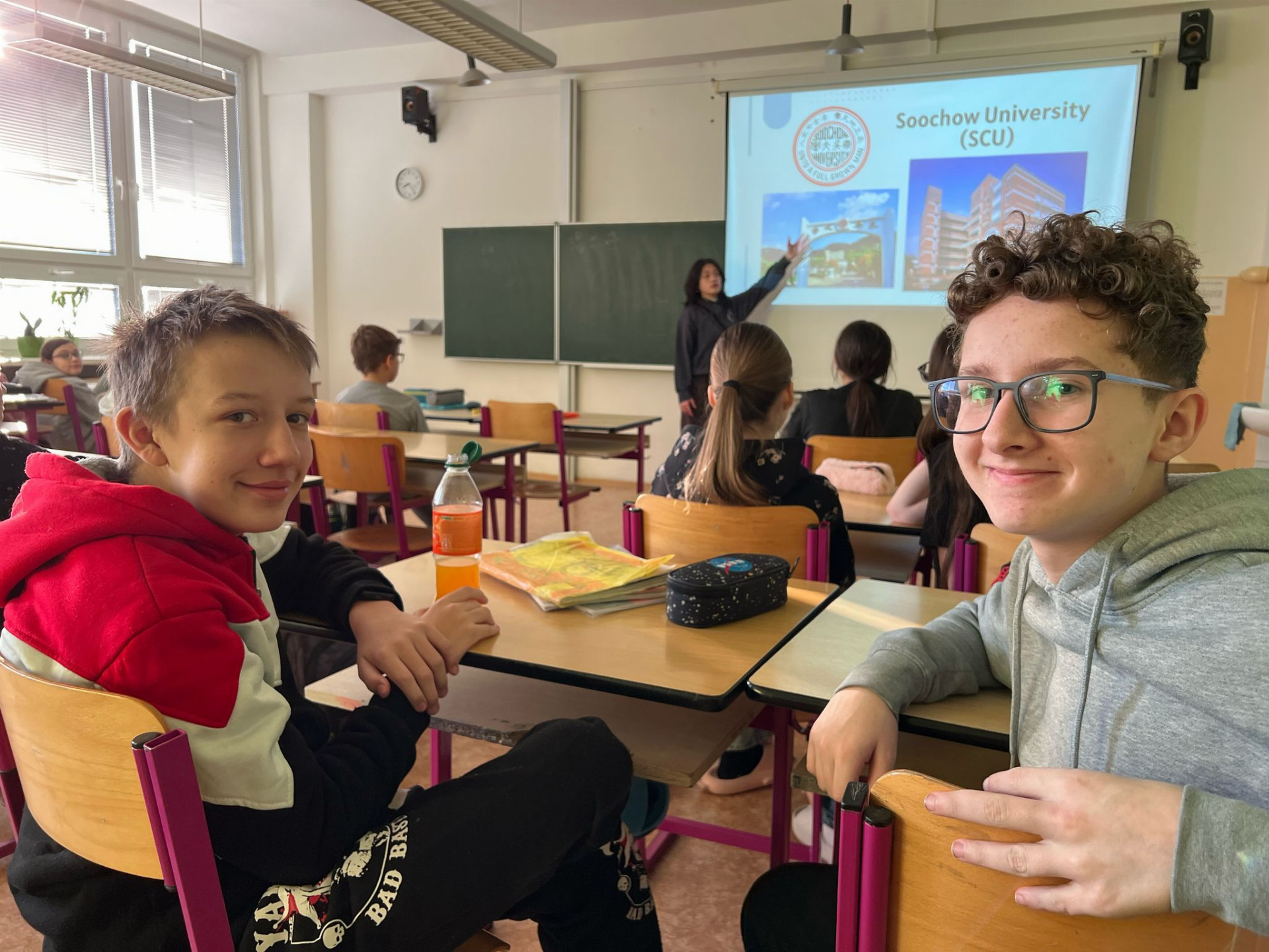 Během tohoto týdne jsme měli tu čest hostit Enolu z Číny a Vanessu s Wen z Tchaj-wanu. Stážistky se aktivně zapojily do hodin angličtiny, kde prostřednictvím prezentací a interaktivních aktivit představily svou kulturu, tradiční zvyky a každodenní život ve svých zemích. Žáci a studenti se nejen dozvěděli mnoho zajímavého, ale také si procvičili angličtinu v reálných situacích a rozšířili si své obzory.